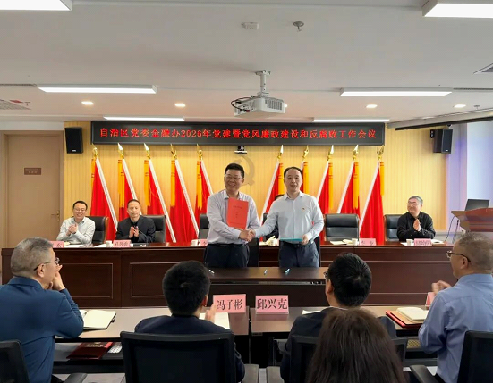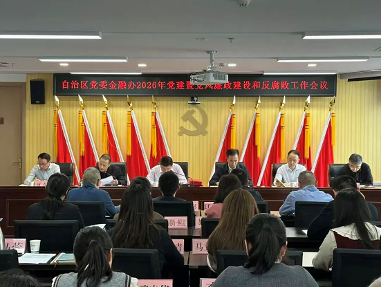 3月10日,自治区党委金融办召开2026年党建暨党风廉政建设和反腐败工作会议。自治区党委金融工委专职副书记孔智勇主持会议,自治区纪委监委驻党委办公厅纪检监察组组长蒋德平到会指导,自治区党委金融办副主任、自治区党委金融工委副书记、自治区地方金融管理局局长李少枫参会并讲话,金融办全体党员干部参加会议。