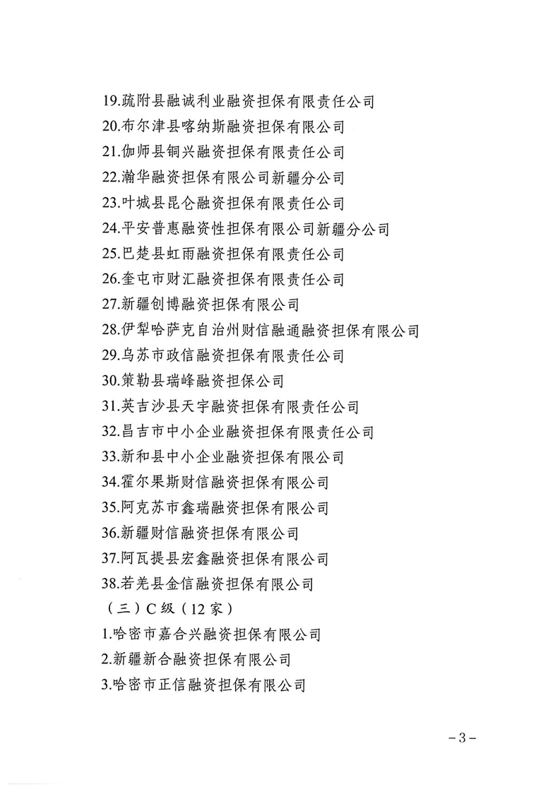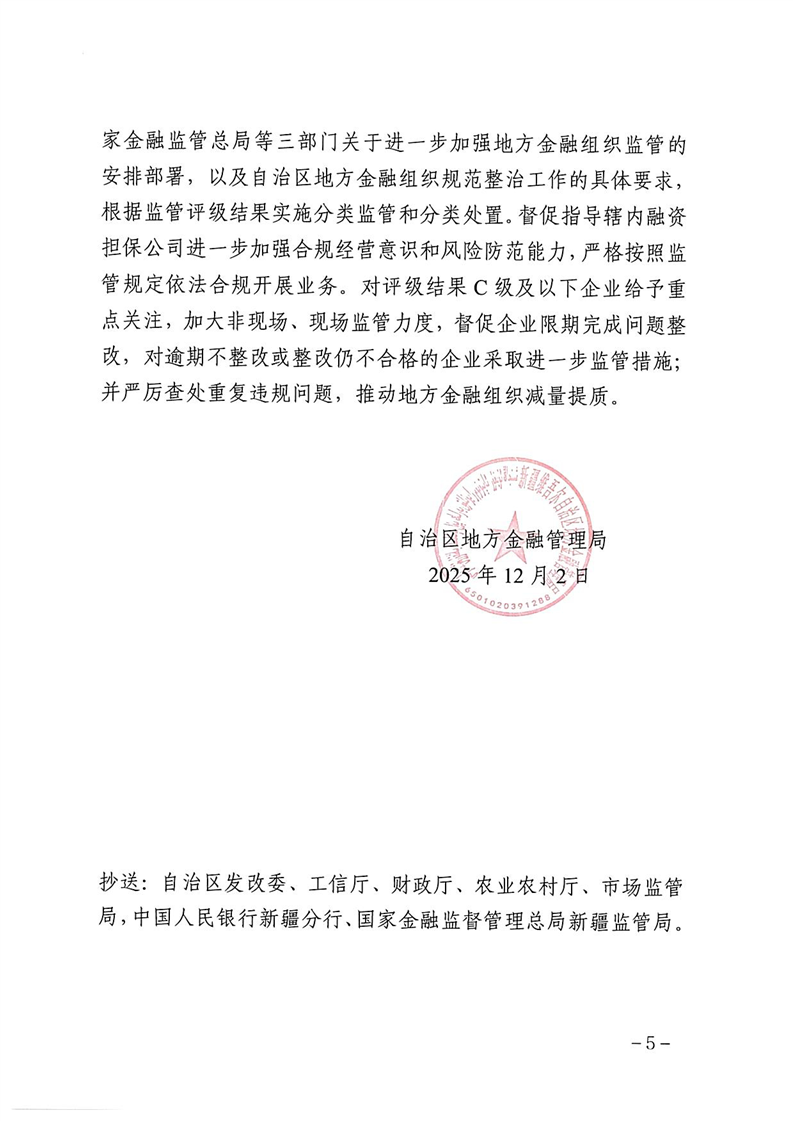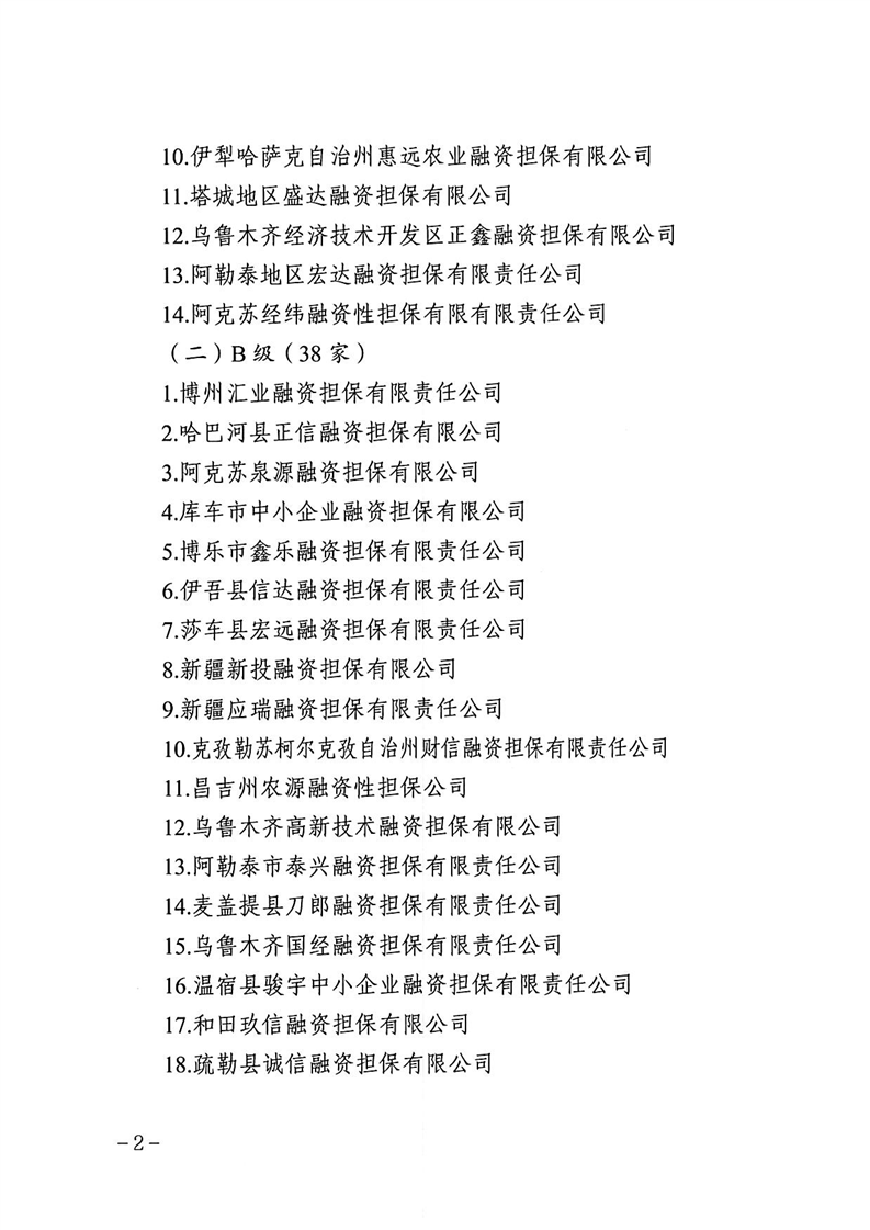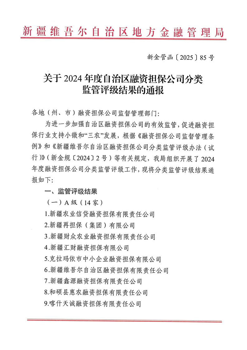 关于2024年度自治区融资担保公司分类监管评级结果的通报