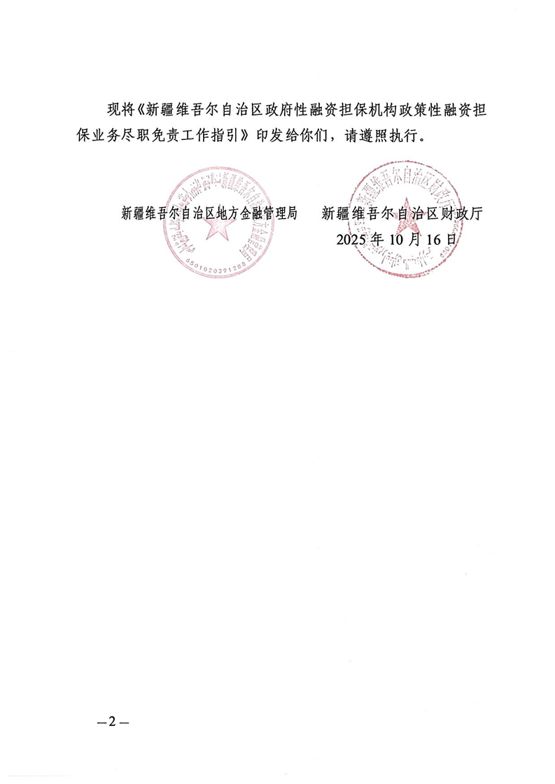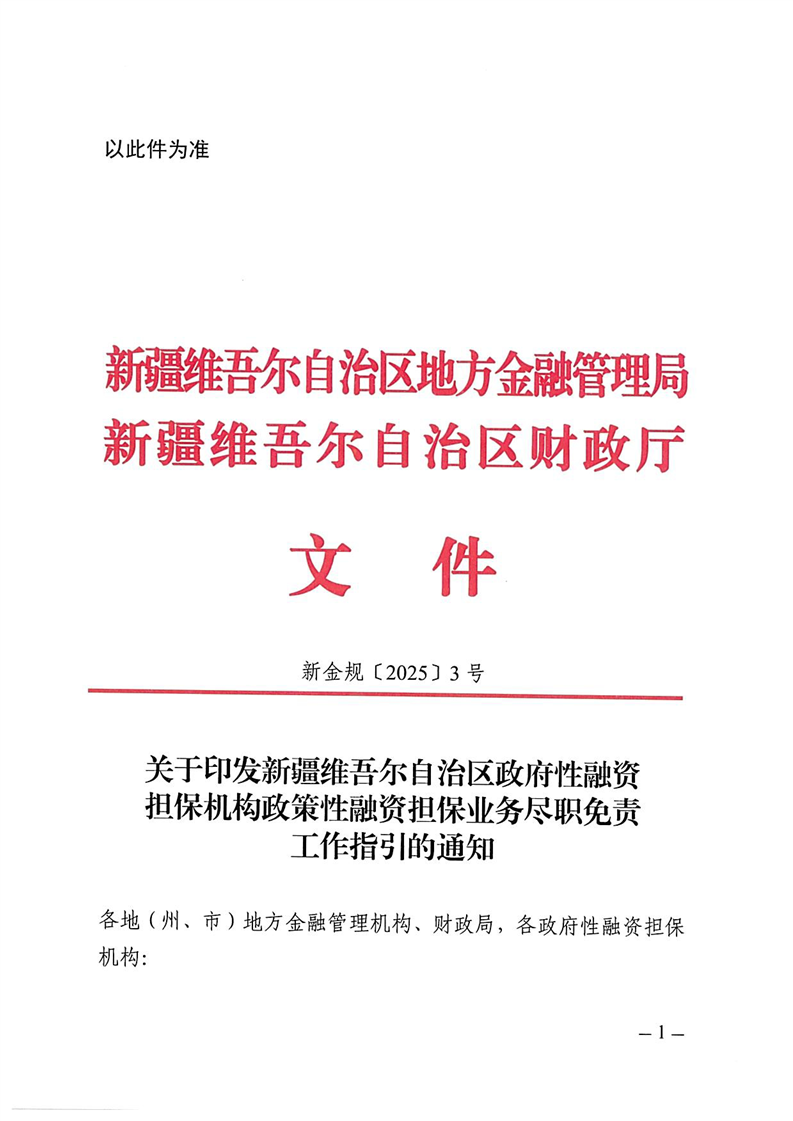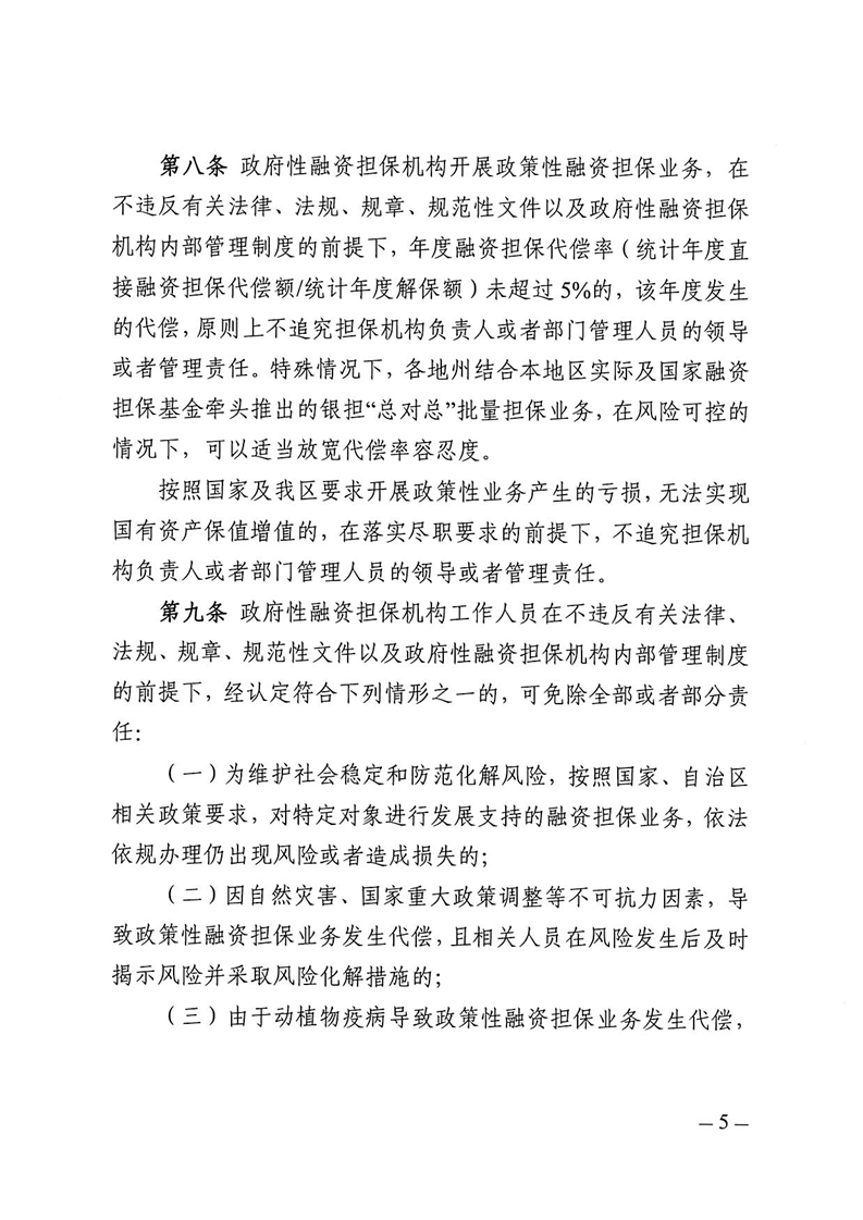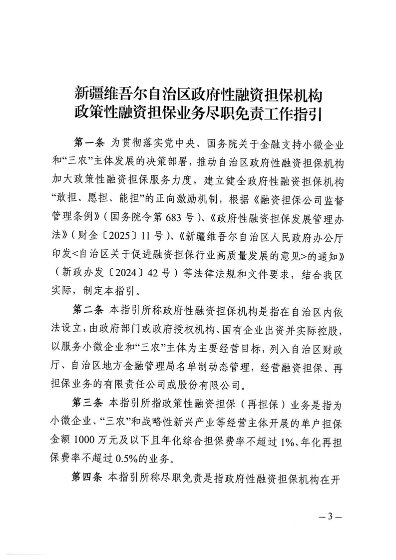 关于印发新疆维吾尔自治区政府性融资担保机构政策性融资担保业务尽职免责工作指引的通知