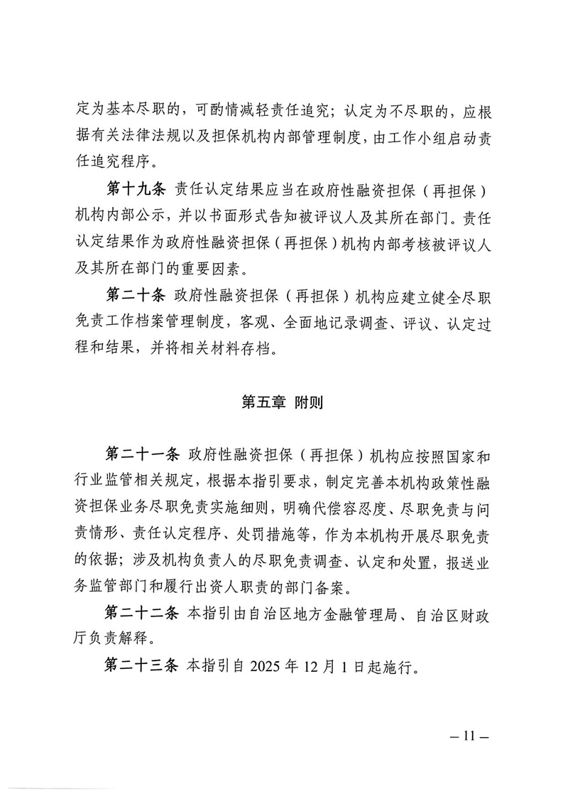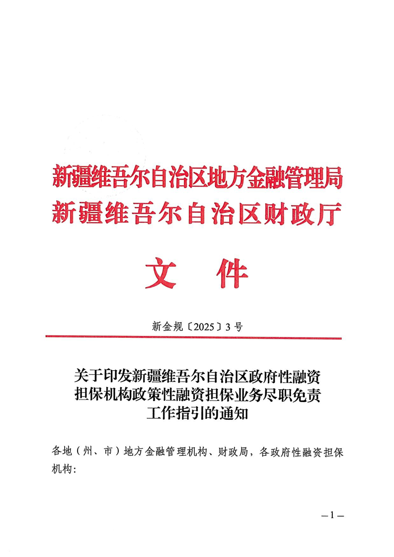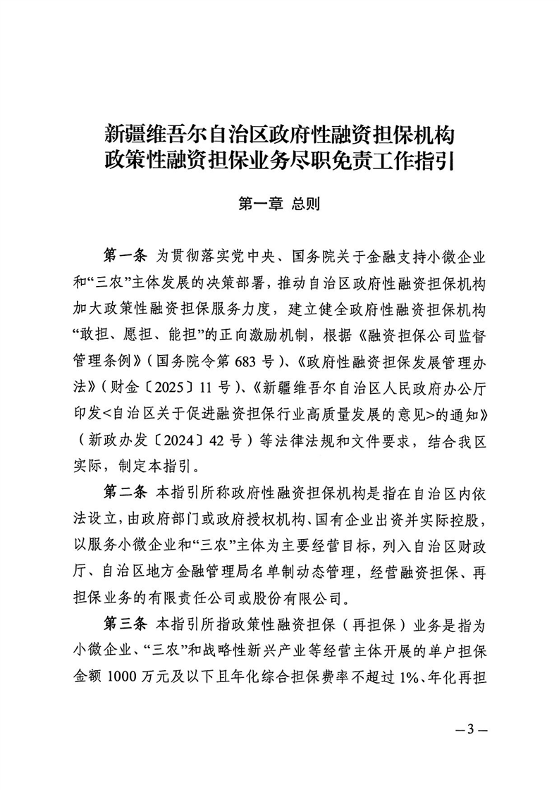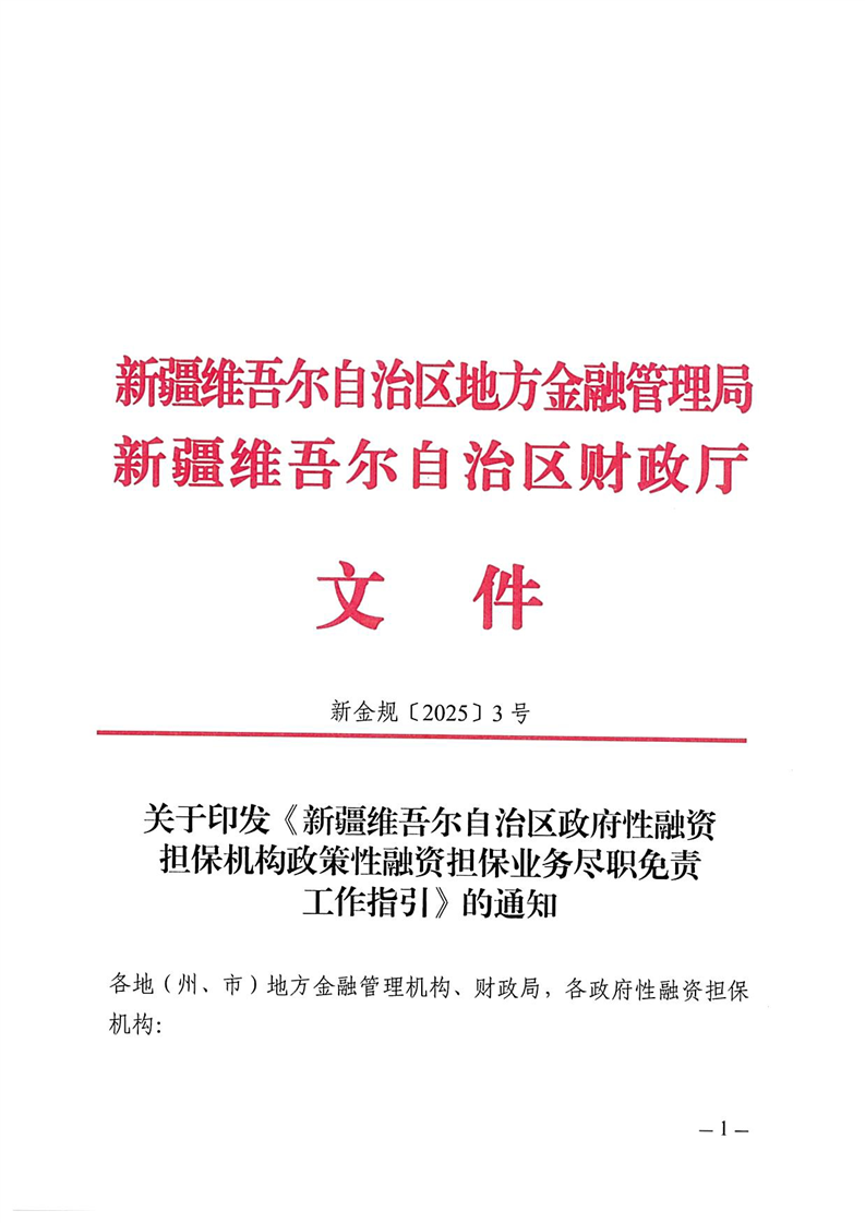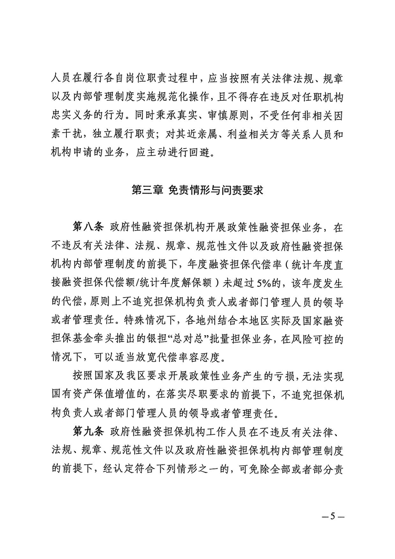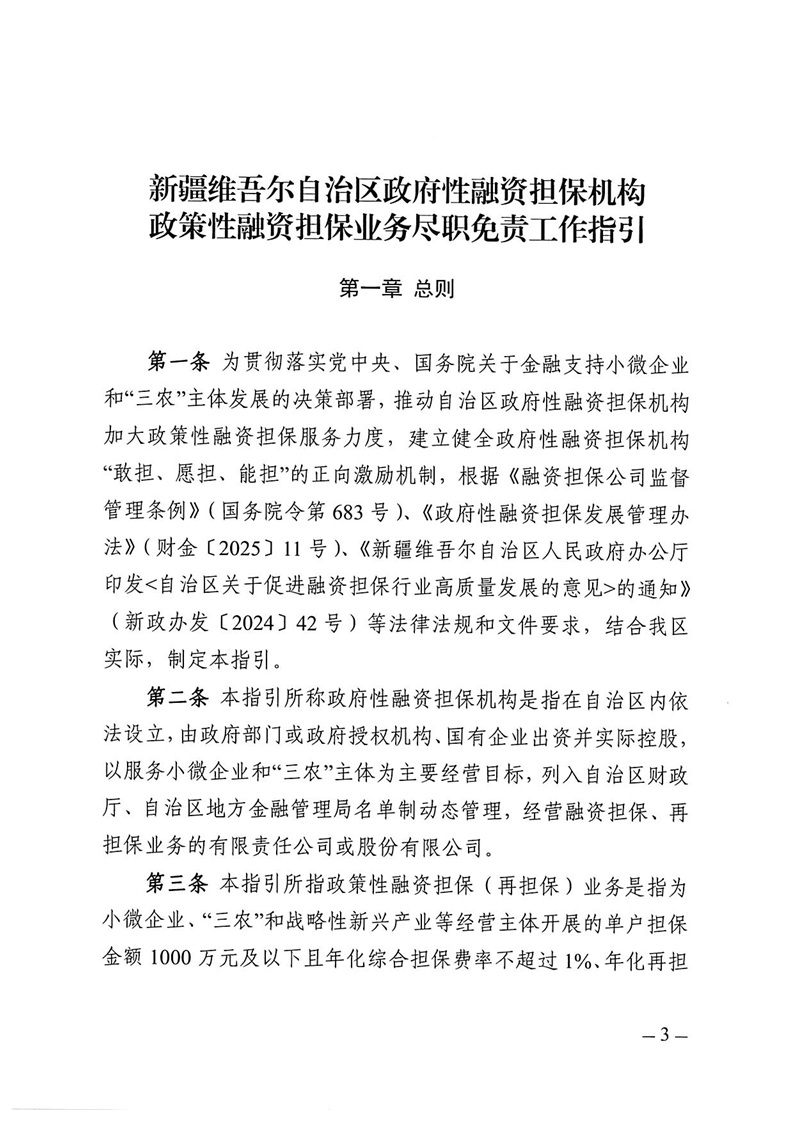 关于印发新疆维吾尔自治区政府性融资担保机构政策性融资担保业务尽职免责工作指引的通知